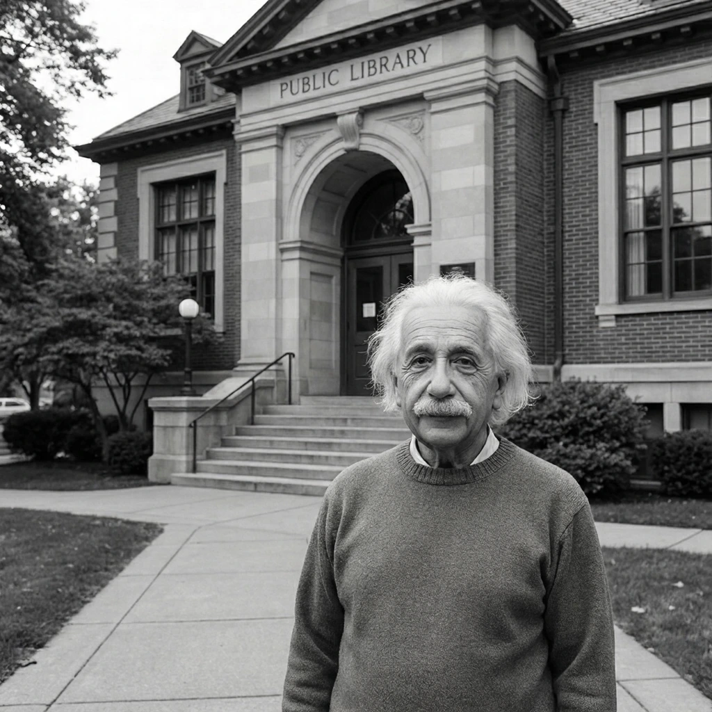 To assist in this—you immediately think of your new neighbor, Albert Einstein—who is great at just this type of thing.